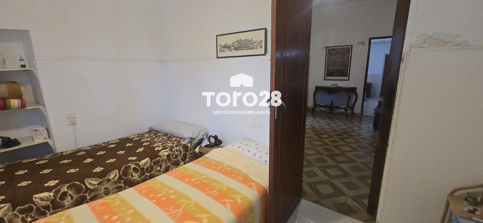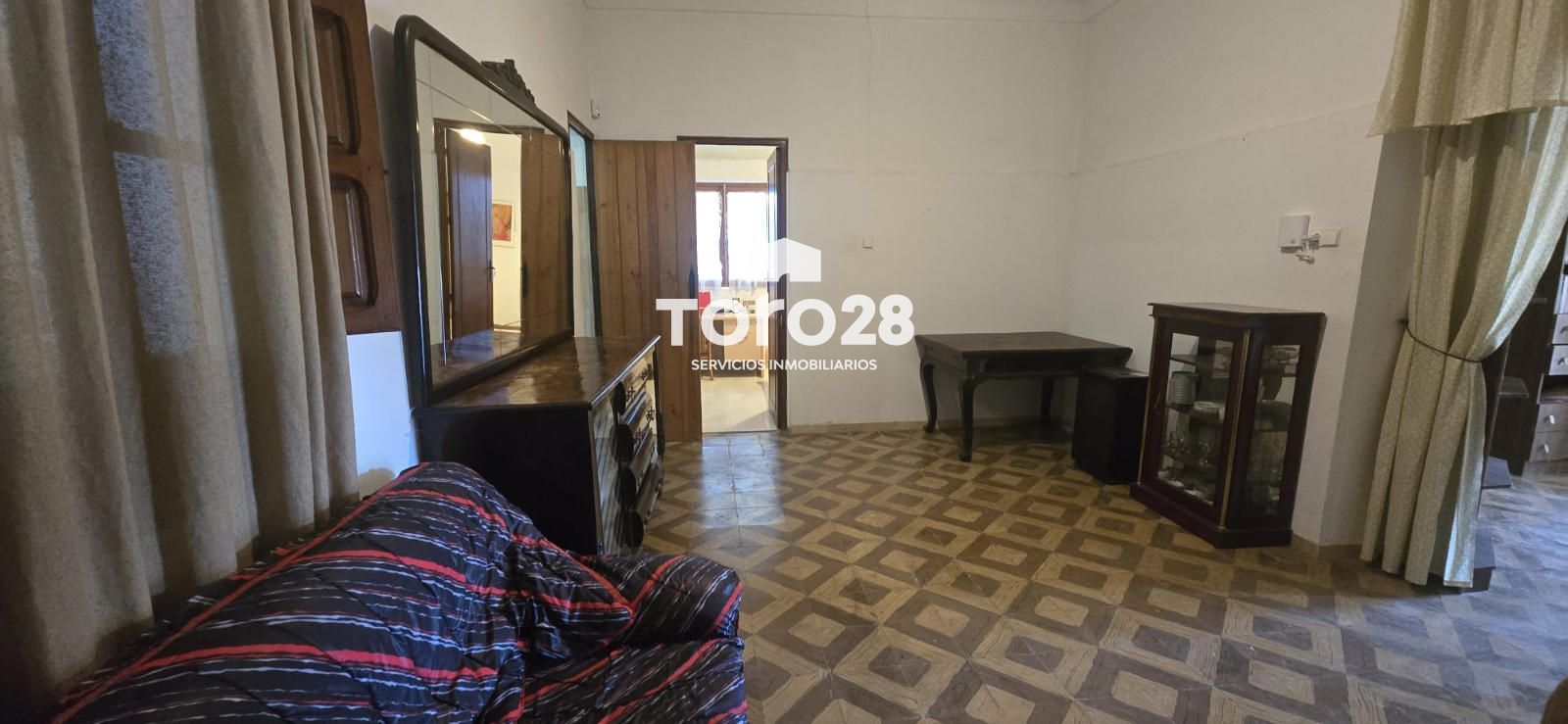 En el centro de la propiedad se encuentra la casa con  382 m2 datada del 1900, distribuido en 4 dormitorios muy grandes antes 5, 2 baños completos, estupendo salón comedor, cocina comedor amueblada con electrodomésticos y estufa de leña, en la concina hay puerta con salida a  parcela y patio interior, con espacio para almacenaje, desde el patio interior hay salida a la parcela.