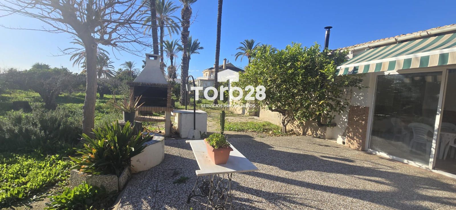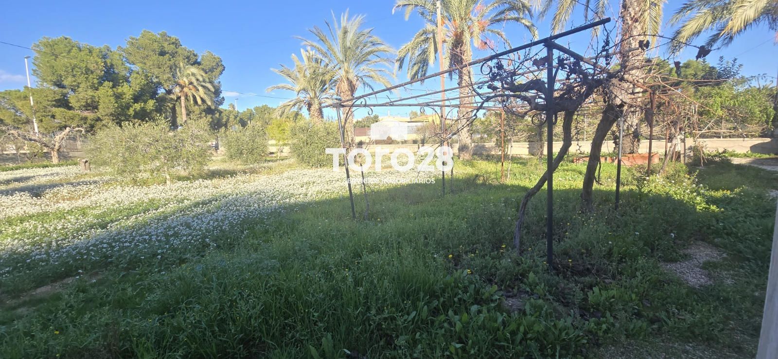 La parcela está rodeada por una exuberante vegetación mediterránea. Aquí crecen estupendos olivos, higueras, limones, naranjas y palmeras que aportan un toque exótico.  En la parcela se reserva un espacio en el que siempre se ha cultivado huerto con verduras frescas.